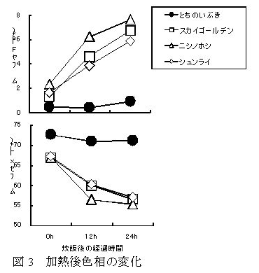 ポリフェノール含量は低く、加熱後の色相の変化が極めて小さい。(図3、表1) |