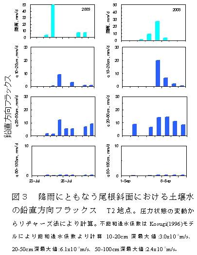 黒ボク土壌からなる草地流域を対象とし上流から下流方向への土壌水の移動がある場合の事例である。 |