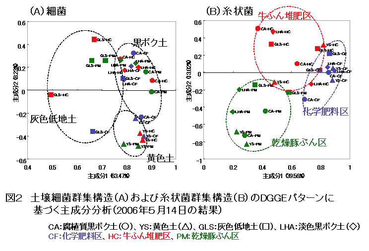 土壌の種類および有機物施用が土壌微生物群集構造に及ぼす影響 | ||||