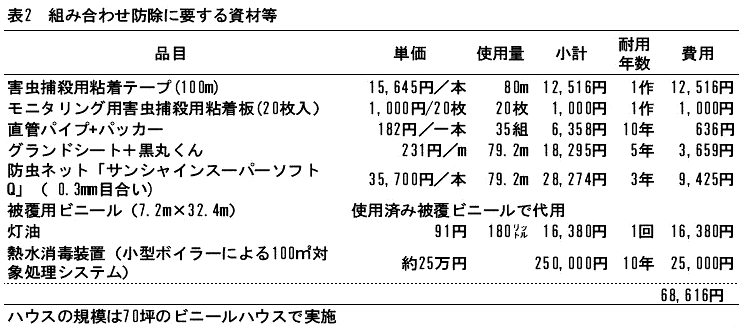 組み合わせ防除の実施には、表2に示す資材等が必要である。 |