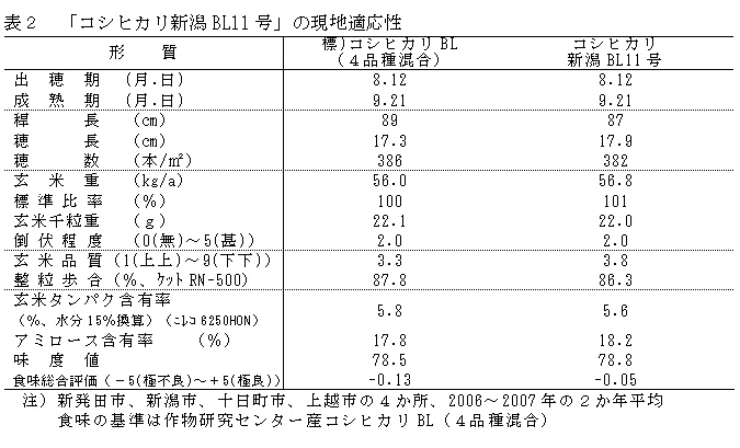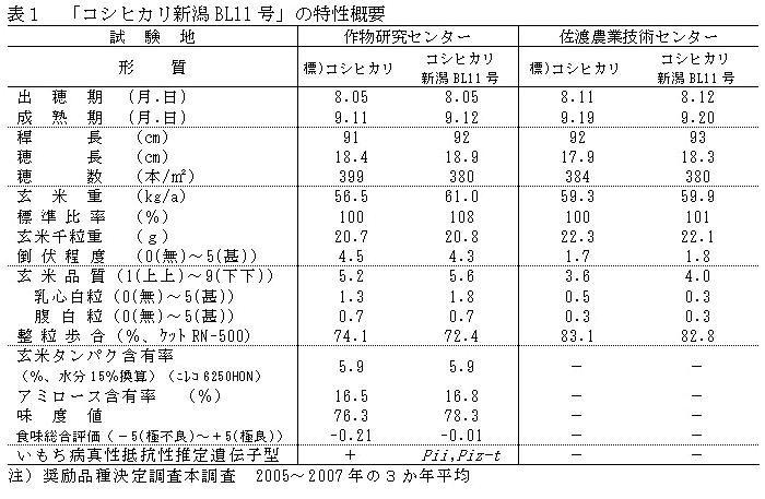 水稲「コシヒカリ新潟BL11号」は、いもち病真性抵抗性以外の品種特性が「コシヒカリ」と同質である。「コシヒカリBL」の新たな構成品種とする。 | ||||