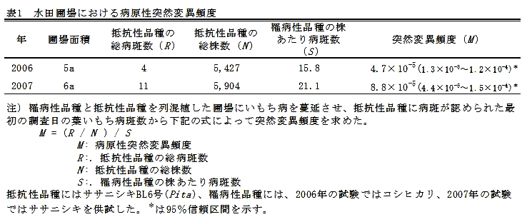 圃場におけるイネいもち病菌の病原性突然変異頻度は10-5のオーダーである | ||||||||