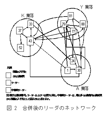 これら組織再編の結果、構成員の情報入手先は、合併前の24名から合併後には18名へと25%減少し、情報入手先一人当たりの平均紐帯数も合併後は増加するなど(表2)、情報伝達の効率化が図られると共に、合併組織の指揮命令系統が確立されている。構成員への情報伝達に関して、O組合の構成員に「私はO組織の現在の活動や将来方向を理解しているし情報も十分に得ている」の設問を行った結果、「そう思う」、「ややそう思う」の合計は60%(回答者78名の47名)を示し、「あまりそうは思わない」、「そう思わない」の14%を大きく上回っている。これは、情報の入手先が限定する中で、構成員の大半は情報を十分に獲得できていることを示している。 |