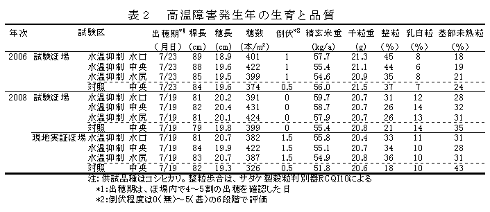 表2 高温障害発生年の生育と品質
