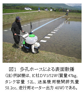 自走式動力散布機と多孔ホースによる水稲湛水直播