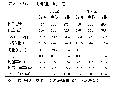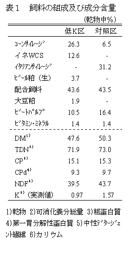 [キーワード]自給飼料、排せつ水分、カリウム、乳生産、泌乳牛 |
