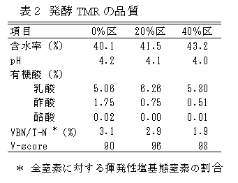 発酵TMRの品質(pH・VBN/T-N・V-score)は良好である(表2)。 |