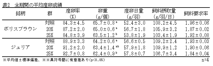 高タンパク質・高脂質エコフィードのコマーシャル採卵鶏への応用 | ||||||||||