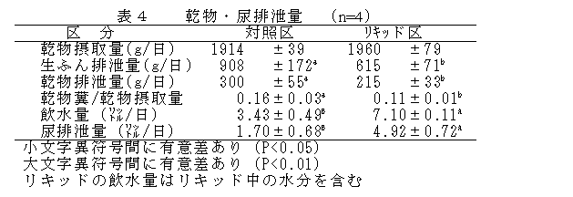 リキッドフィードにおいてはふん排泄量は減少するが、尿量が増えるため、この点については留意する必要がある。 |