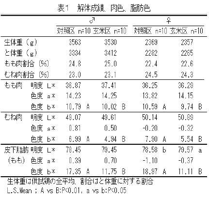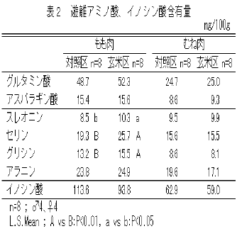 玄米を給与した信州黄金シャモの肉質特性 | ||||||||||||