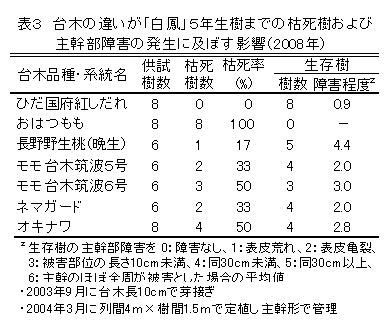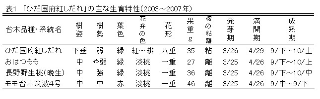 新品種「ひだ国府紅しだれ」の実生台木はモモ若木の枯死障害回避に有効 | ||||||||