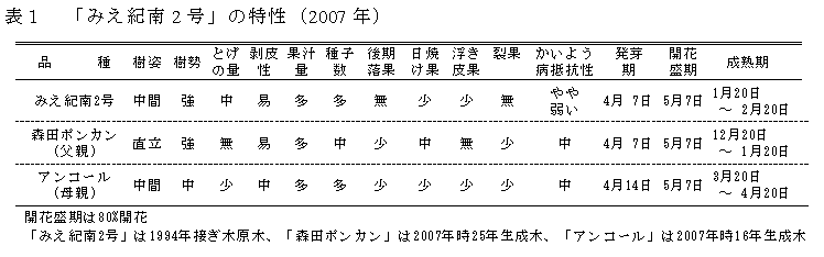 [担当]三重農研・紀南果樹研究室 [代表連絡先]電話:05979-2-0008 [区分]関東東海北陸農業・果樹 [分類]技術・普及 |
