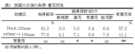 [キーワード]ハウスミカン、1-ナフタレン酢酸ナトリウム、エチクロゼート、着花 |
