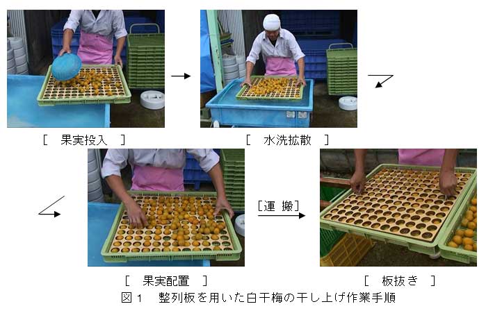 「白干梅整列板」利用によるウメの天日干し作業の省力化法