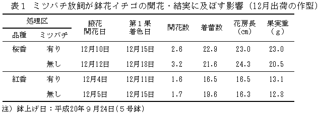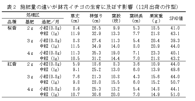 鉢花イチゴ「桜香」「紅香」の12月及び3月上旬出荷技術 | ||||||||||