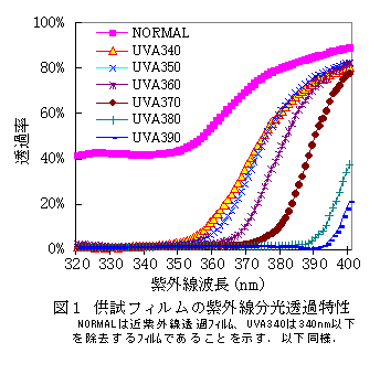 360nm以下の波長を除去する近紫外線除去フィルムは、従来の380nm以下を除去するフィルムと比較して、ほぼ同等の害虫防除機能を有し、コマツナの生育の軟弱化を軽減することができる。 |
