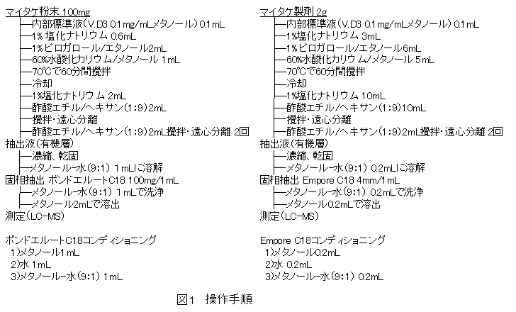 マイタケに含まれるビタミンD2(エルゴカルシフェロール)の迅速分析法 | ||||||||||||
