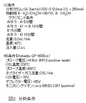 マイタケに含まれるビタミンD2(エルゴカルシフェロール)は液体クロマトグラフィー質量分析装置(LC/MS)を用いることで迅速に測定できる。 | ||||||||||||