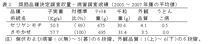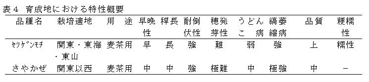 「セツゲンモチ」は、麦茶用もち性品種の要望に応えるため、奨励品種に採用する。 | ||||||||||||||||