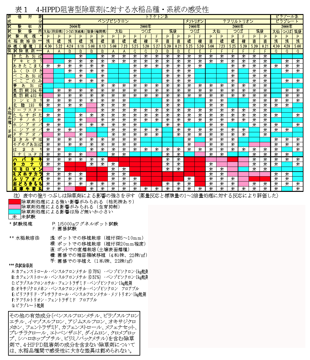 新規需要米向け水稲品種の4-HPPD阻害型除草剤に対する感受性