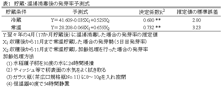 貯蔵・温湯消毒後の水稲種子発芽率の予測方法 | ||||||||