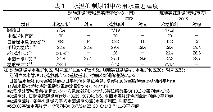 研究課題名:稲の高温障害対策調査(農業用水の活用と水需要動向) | ||||||||