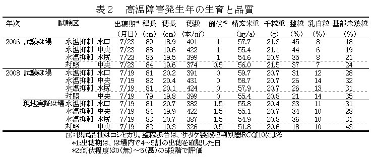 出穂期の連続通水による水田水温抑制が水稲の高温障害低減に及ぼす効果 | ||||||||