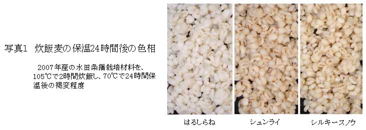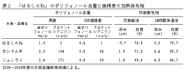 切断麦に適し極低ポリフェノールで炊飯後褐変が少ない六条皮麦新品種「はるしらね」 | ||||||||||||||||||
