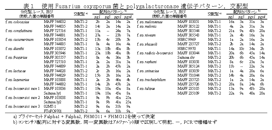 [キーワード]Fusarium oxysporum、polygalacturonase、遺伝子、多型、系統 |
