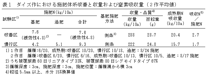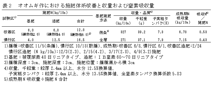 ダイズ-オオムギ輪作体系における施肥方法の改善による窒素負荷低減効果 | ||||||