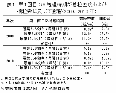 ブドウ「サニールージュ」の着粒密度低減のための第1回目ジベレリン処理時期 | ||||||