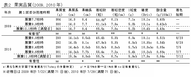 [キーワード]サニールージュ、花穂伸長、摘粒、ジベレリン、展葉枚数、成熟促進 |