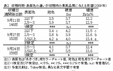 [キーワード]あきづき、果肉障害、水浸状障害、収穫時期、表面色 |