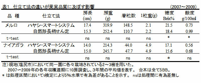 ‘ハヤシ-スマートシステム’による醸造用ブドウの高糖度果実の省力的生産 | ||||||||||