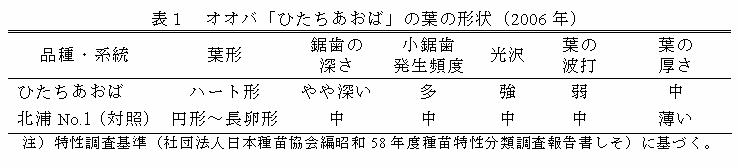 外観品質に優れるオオバ新品種「ひたちあおば」の育成