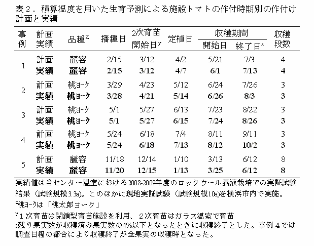 [キーワード]トマト、積算温度、生育予測、作付組合せ |
