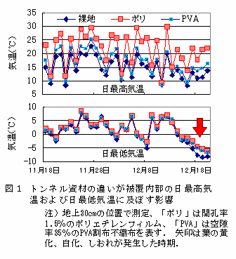 [キーワード]冬どりコマツナ、低温障害、黄化葉、トンネル、べたがけ |