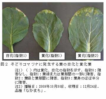 冬どりコマツナにおける黄化葉の発生軽減化技術 | ||||||||