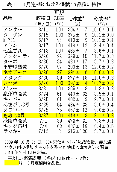[キーワード]冬季温暖地域、無加温ハウス育苗、業務用タマネギ、2月定植、作付体系 |