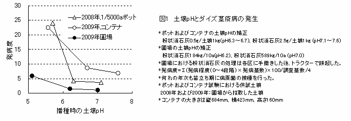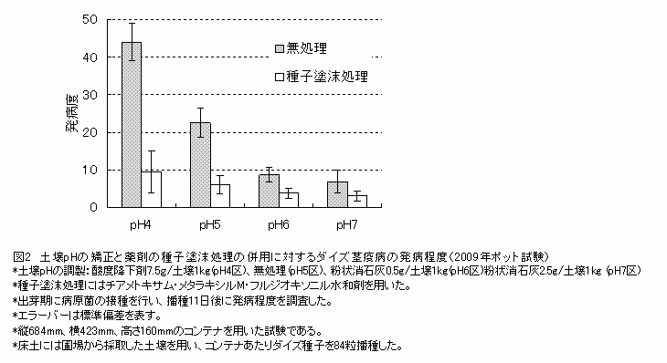 土壌pHの矯正と薬剤の種子塗沫処理によるダイズ茎疫病の防除 | ||||||