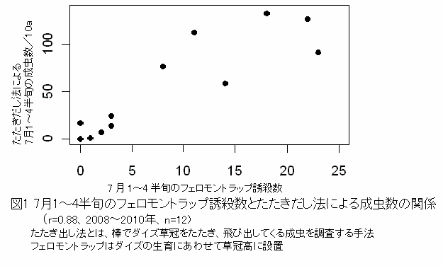[キーワード]ダイズ、ウコンノメイガ、合成性フェロモン、防除要否 |