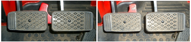 そこで、農業機械安全性検査では、左右のブレーキペダルが非連結状態であることを表示する警告ランプ等の装着を基準に定めています。また、近年、警告ランプだけでなく、片ブレーキをかける時は、左足で片ブレーキ解除ペダルを踏まないと右足で片ブレーキがかけられない構造のより安全性の高い乗用トラクターも多く販売されています。