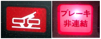 図2 左右独立ブレーキ非連結状態の警告ランプの例