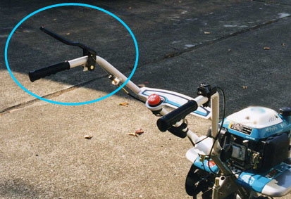 農業機械安全性検査では、後進速度段を有する歩行用トラクターには、ハンドルが持ち上がったり、機械とハウス、立木あるいは納屋などの間に挟まれたりといった緊急時において、ワンタッチでエンジンを停止できる緊急停止装置を手が容易に届く位置に装備するように基準に定めています。