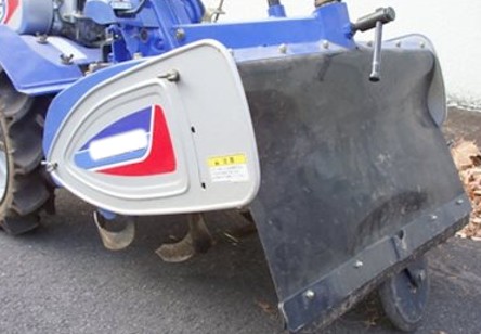 ロータリー後部カバーは土の飛散を抑えることだけを目的として装着されているわけではありません。清掃等で後部カバーを跳ね上げた場合や取り外した場合でも、作業を行う際には必ず元の状態に戻し、不用意に足をロータリーに近づけないよう注意しながら作業を進めるようにしましょう。