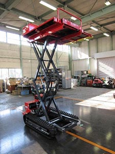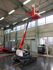 そこで、一定の傾斜角度となった際にランプもしくは警報等により、作業者に注意喚起をする装置が搭載されているものが市販化されています。実際に作業される際は、過積載にならないようにしましょう。また、凹凸のある場所や傾斜地での高所作業は大変危険ですのでやめましょう。