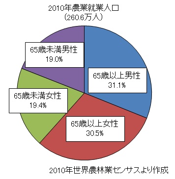 農業就業人口の約6割が65歳以上の高齢者であり、また、女性が農業就業人口の約5割を占めています(図1)。一般的に高齢者・女性は成人男性よりも体格、筋力等の身体能力が低いと言えます。そうした方々にも使われる農業機械の安全性、取扱性について、革新工学センターの安全鑑定基準(以下、安鑑基準)においても、より一層高齢者・女性を考慮したものとしていく必要があります。
