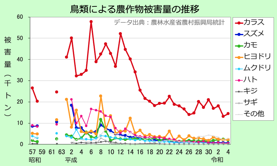 被害が常態化している地域では、鳥と人との緊張関係が失われていることが多いようです。そうならないためには、正式に許可を取って銃器による有害鳥獣駆除も適切に実施しましょう。