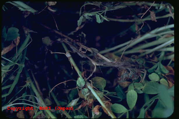 北海道で発生し、株の萎凋を引き起こす糸状菌病。初め葉が黄化し、先端が萎凋する程度であるが、徐々に病状が茎全体に及ぶ。この時二次根の発達が悪く、主根の中心部は冠根部から根の先端まで褐変する。病勢が進むと、再生不良となり、徐々に衰弱枯死し、草地の衰退の原因となる。病原菌はアカクローバも侵し、沖積土壌に比べ火山灰土壌で発生が多いとされる。 |