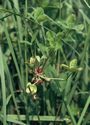 葉に火ぶくれ状の膨らみを生じる糸状菌病。病斑は葉では直径2-5mmで、変色はしない。葉柄や茎に発生するとこぶ状になり、その部分でねじ曲がったようになる。激発すると、株全体の勢いが大きく衰える。シロクローバにのみ発生する。 |